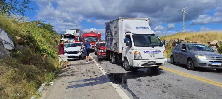 Com o impacto da batida, um carro e um caminhão foram jogados para o canteiro – o caminhão chegou a sair da pista.