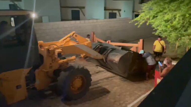 Logo após um morador registrar o acesso fechado, um trator, ninguém sabe de quem, foi enviado ao local para retirar o portão e liberar a via para a praia. Críticas surgiram para todos os lados nas redes sociais.
