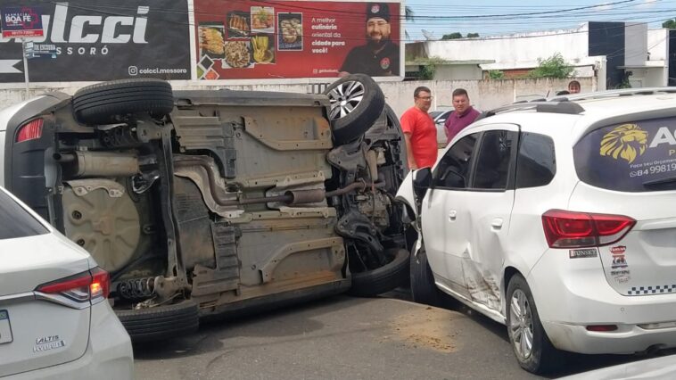 Um congestionamento foi registrado na Avenida João da Escóssia, após um capotamento envolvendo três carros na manhã dessa sexta-feira (19), em Mossoró. Não há registro de vítimas.