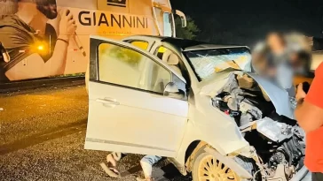 Acidente entre ônibus do cantor Gianinni Alencar e carro deixa feridos na BR-226