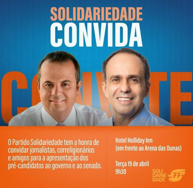 “O partido Solidariedade tem a honra de convidar jornalistas, correligionários e amigos para a apresentação dos pré-candidatos ao governo e ao senado”, diz o convite.