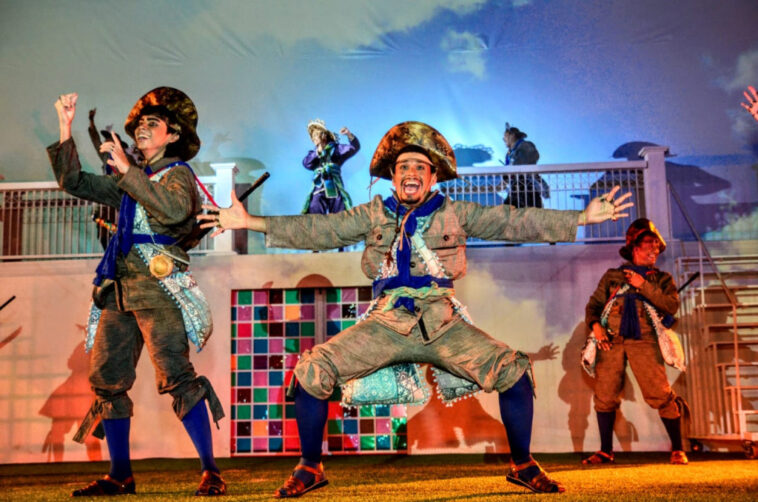 No palco, atores e atrizes, bailarinos e bailarinas, que encantam o público com um show de encenação e dança. Artistas que externam talento em atuações cheias de emoções. Talentos da nossa terra que se orgulham em contar a história heroica do povo mossoroense.