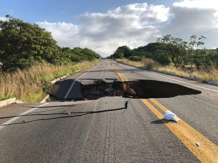 Cratera se abre e interdita BR-101 Norte totalmente na Grande Natal