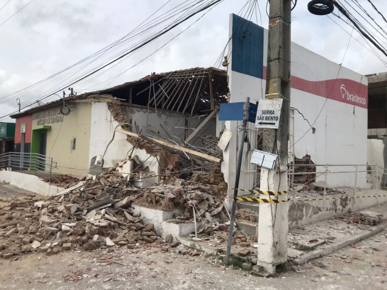 Em seguida, a quadrilha seguiu até uma agência bancária localizada cerca de um quarteirão depois, também às margens da BR-226, onde realizou outra explosão, que destruiu o prédio.