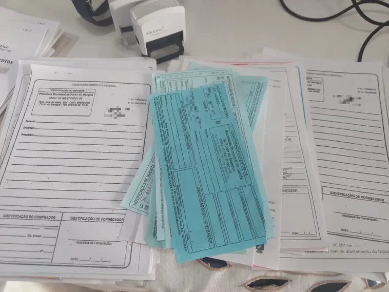 Durante o cumprimento dos mandados, também foram apreendidos documentos, celulares e vários receituários médicos em branco já assinados. O MPRN apura se há envolvimento de outras pessoas no esquema e se o grupo agia em outras cidades.
