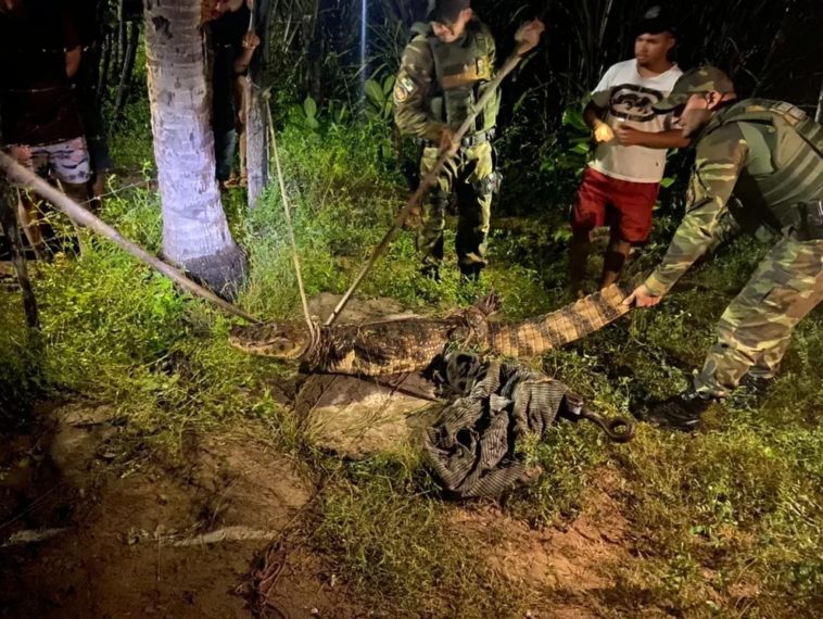 Ainda de acordo com a Cipam, trata-se de um jacaré-de-papo-amarelo, adulto, que mede dois metros e seis centímetros.