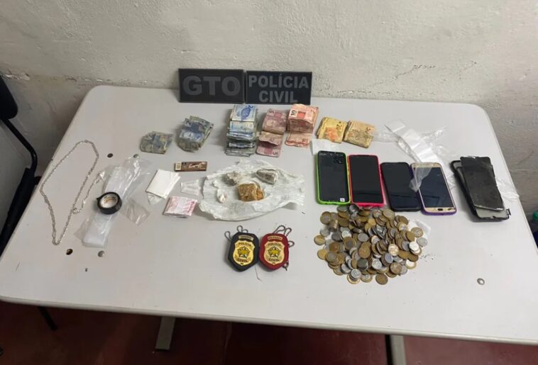 Durante as buscas, os investigadores localizaram e apreenderam cerca de 60 gramas de crack e quase 32 gramas de maconha, além de R$ 1.237,00, totalizando cerca de R$ 4 mil descapitalizados do tráfico local.