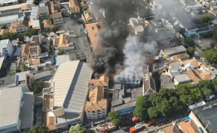 Um incêndio de grandes proporções atingiu, na manhã desta quarta-feira (12), uma fábrica de fantasias e uniformes militares localizada no bairro de Ramos, zona norte do Rio de Janeiro. O Corpo de Bombeiros foi acionado às 7h39 para conter as chamas no edifício situado na Rua Roberto Silva. A operação mobilizou 90 militares e 13 unidades operacionais, incluindo o Grupamento de Operações Aéreas e especialistas em salvamento em altura.