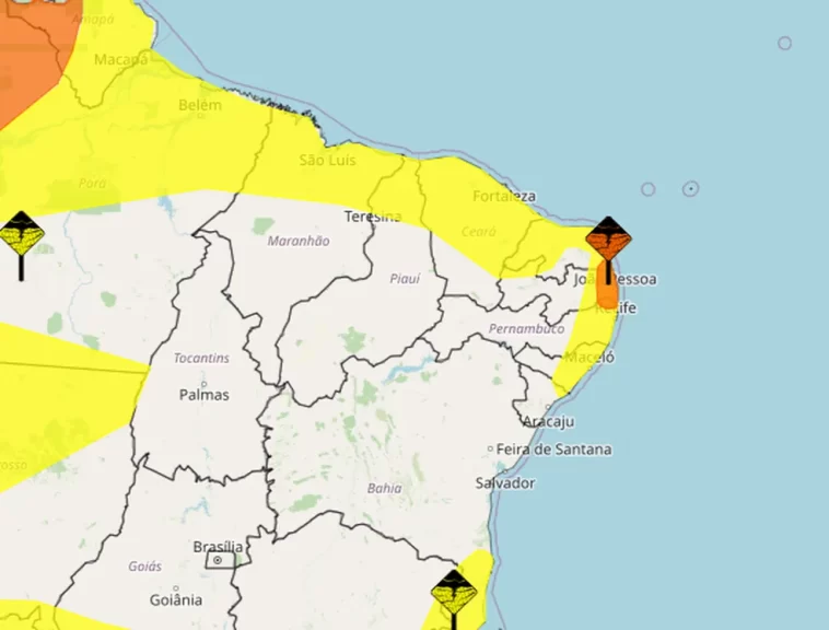 Os alertas são das cores amarela (perigo potencial) e laranja (perigo). São 137 municípios inclusos no alerta amarelo e 17 no laranja – 16 cidades estão nos dois.