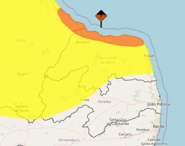 Os alertas, laranja e amarelo, atingem as regiões Oeste, Central, Agreste e Leste Potiguar. Treze cidades estão nos dois avisos.