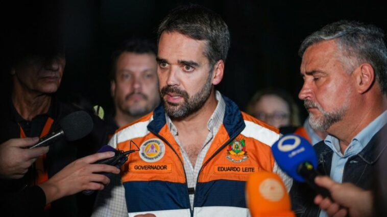 O governador Eduardo Leite (PSDB) disse nesta 5ª feira (9.mai.2024) que serão necessários ao menos R$ 19 bilhões para reconstruir a infraestrutura do Rio Grande do Sul depois das fortes chuvas que atingiram 425 dos 497 municípios e já mataram 107 pessoas. Segundo Leite, diversas áreas vão precisar de recursos.