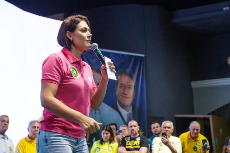Ao falar sobre o ex-presidente Jair Bolsonaro, Michelle relatou que o marido gostaria de estar em Natal. “Mas está em prisão domiciliar, injustamente. Bolsonaro foi um divisor de águas a partir do movimento da direita. Que veio para resgatar o patriotismo, o amor à bandeira e o amor à pátria. Bolsonaro levantou a voz e hoje é perseguido e nós não vamos nos submeter a essa ditadura judicial. E, dias melhores virão. 2026 tá logo ali. Ou a gente reage, ou seremos engolidos. Vamos reagir e para presidente tem nome e sobrenome: Jair Messias Bolsonaro. Ele vai voltar. Deus conhece o coração daquele homem. Nós contamos com vocês no dia 7 de setembro. Não vamos desistir do nosso Brasil. Que Deus abençoe o Rio Grande do Norte e tenha misericórdia do nosso Brasil.”, convocou.
