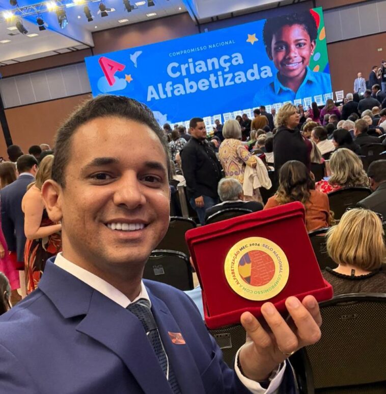 O prefeito de Mossoró, Allyson Bezerra, recebeu nesta segunda-feira (10) o Selo Ouro em Educação, concedido pelo Ministério da Educação (MEC). O reconhecimento ocorreu durante a cerimônia do Prêmio Selo Nacional Compromisso com a Alfabetização, realizada no Centro Internacional de Convenções do Brasil, em Brasília/DF.