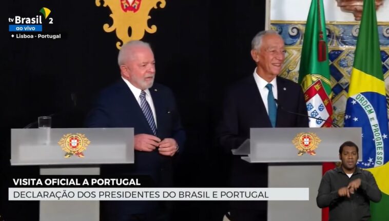 O presidente Luiz Inácio Lula da Silva ficou constrangido durante uma coletiva de imprensa ao lado do homólogo português, Marcelo Rebelo de Sousa, neste sábado, 22, em Lisboa.