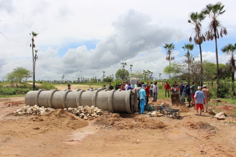 Por meio de uma importante parceria firmada entre os Municípios de Felipe Guerra e Apodi, teve início ontem, terça-feira (15), a construção da passagem molhada sobre o Córrego do Benedito, no trecho que liga as comunidades rurais de São Lourenço I, Pindoba I e Pindoba II. A obra era sonho antigo das famílias que habitam aquelas comunidades, as quais se localizam na divisa entre os dois municípios e que geralmente ficavam ilhadas nos períodos chuvosos.