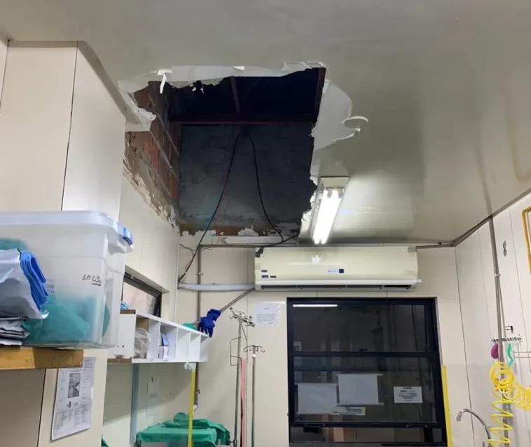 O incidente ocorreu por volta das 18h30 desta terça. De acordo com a direção da unidade, a sala onde foi registrado o desabamento do teto funcionava o expurgo, local que reúne material contaminado do hospital.