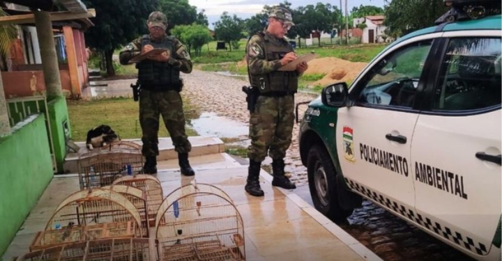 Na tarde de ontem, segunda-feira (13), militares da 3ª Companhia da Polícia Ambiental realizaram uma operação de patrulhamento no município de Baraúna, onde encontraram diversas aves silvestres mantidas em gaiolas em residências locais.