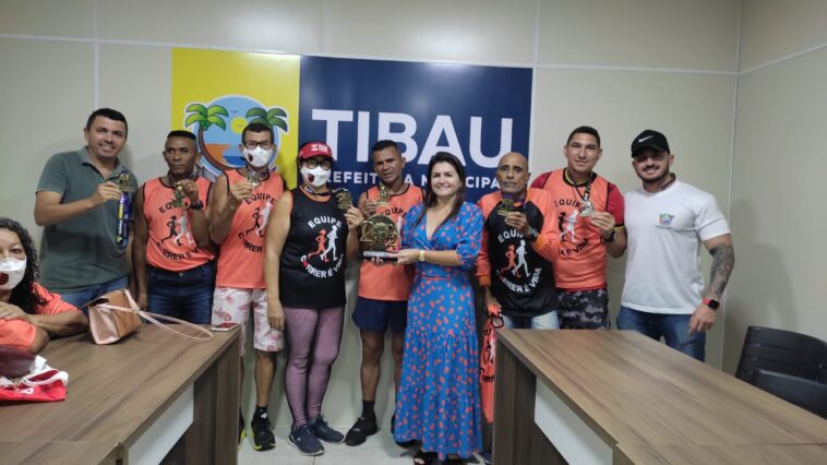 A prefeita Lidiane Marques (PSDB), do município de Tibau, e o secretário de esportes, Adriel Gois Carvalho, receberam na manhã desta terça-feira, 9, os nove atletas que participaram no final de semana da Maratona Internacional de João Pessoa.