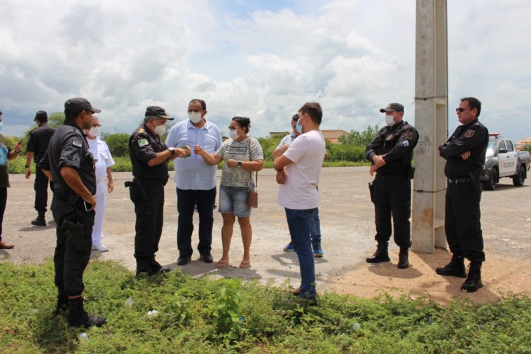 Na manhã de ontem, quarta-feira (16), o prefeito Salomão recebeu uma equipe da Polícia Militar do Rio Grande do Norte (PMRN), composta pelo Coronel PM Mendonça, Sub. Comandante; Coronel PM Espinola, Diretor de Finanças; Major PM Myria, Comandante da 6ª CIPM de Apodi; e Sargento PM Delgineto, Comandante do 2° Pelotão de Polícia Militar – Felipe Guerra. Na ocasião, a equipe realizou uma visita ao terreno onde será construída a nova sede do 2° Pelotão de Polícia da cidade. O projeto está sendo viabilizado entre os Poderes públicos estadual e municipal, com apoio da sociedade civil, haja vista que o terreno está sendo doado pela empresária felipense Rosângela Gurgel Diógenes.