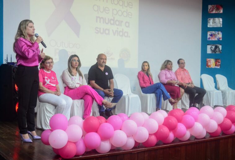 A solenidade reuniu profissionais que integram a rede de saúde municipal e demais secretarias, bem como representantes de instituições parceiras e sociedade civil. “Trabalhamos essa temática de prevenção ao câncer de mama, durante todo o ano, mas no mês de outubro o município intensifica todas as ações. É um momento importante, porque o câncer ainda continua matando muitas mulheres. No nosso município, precisamos trabalhar diariamente a promoção à saúde e à prevenção das doenças. É uma campanha que a gente tem vários parceiros. Estamos trabalhando de uma forma bem articulada, com várias instituições, com outras secretarias municipais de Assistência, Educação, porque a informação precisa chegar a todo o público. Trabalharemos em todas as unidades básicas de saúde do município, atenção básica e atenção especializada, zona urbana e zona rural, uma programação maravilhosa”, destacou Suiann Costa, coordenadora de Saúde da Mulher do município.