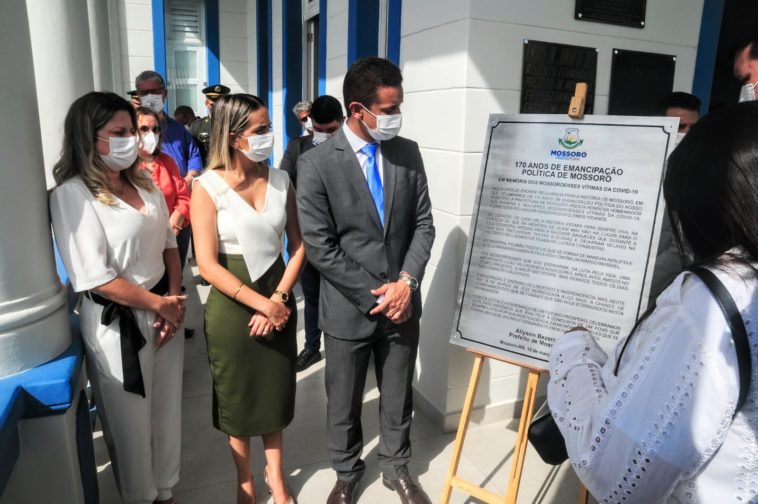 Em cerimônia movida por emoção, o prefeito Allyson Bezerra conduziu a celebração dos 170 anos de emancipação política do município de Mossoró. Da sacada do Palácio da Resistência, o chefe do Executivo lembrou as 646 vítimas da Covid-19 na cidade que foram homenageadas com uma placa comemorativa.