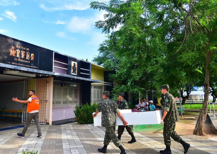 Além das equipes da Secretaria Municipal de Infraestrutura, Meio Ambiente, Urbanismo e Serviços Urbanos (Seimurb), Defesa Civil e Assistência Social, membros do Tiro de Guerra 07-010 de Mossoró também contribuíram para a rápida transferência dos moradores afetados.
