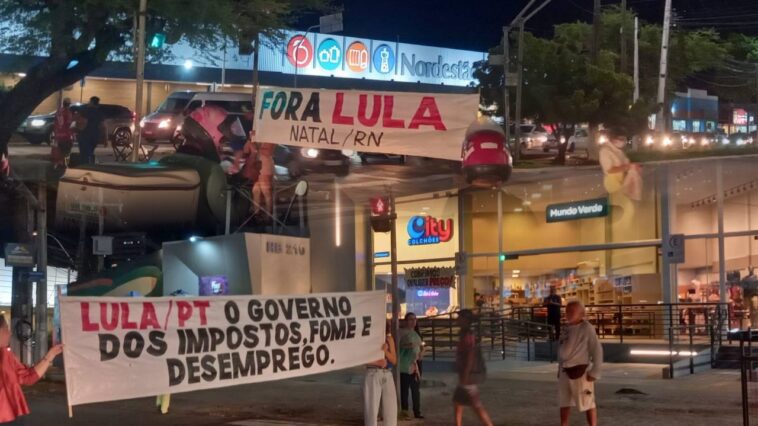 Na noite desta quarta-feira (19), manifestantes realizaram um protesto em Natal, pedindo “Fora Lula”. Com cartazes e faixas, os participantes criticaram o atual presidente da República, Luiz Inácio Lula da Silva, e sua gestão.