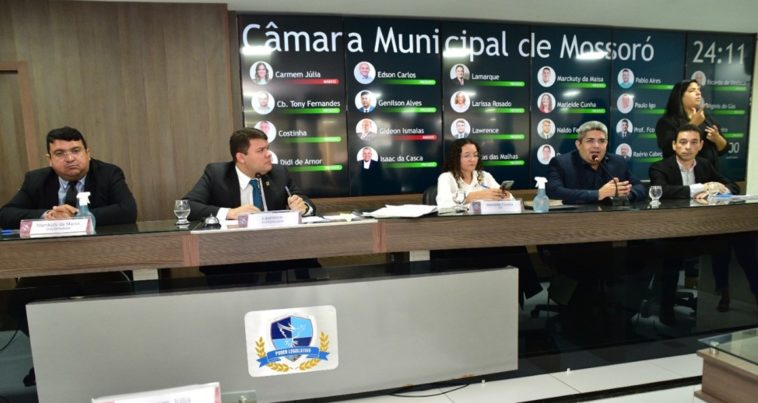 Os secretários municipais Rodrigo Lima (Infraestrutura, Meio Ambiente, Urbanismo e Serviços Urbanos/Seimurb) e Kadson Eduardo (Administração) visitaram a Câmara Municipal de Mossoró, na manhã de hoje (6). O Legislativo suspendeu a sessão, e os secretários apresentaram, no plenário, detalhes sobre obras no Corredor Cultural de Mossoró.