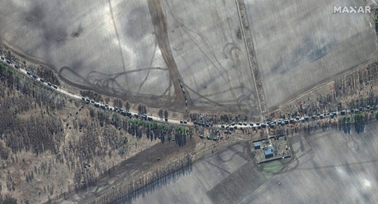 A empresa Maxar Technologies, que produziu as imagens, disse que há centenas de blindados e tanques se movendo em direção a Kiev.