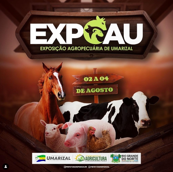 O Município de Umarizal-RN realizará, de 02 a 04 de agosto do ano em curso, a primeira edição da Exposição Agropecuária de Umarizal – EXPOAU. A data foi definida a partir de reunião realizada entre o Prefeito Raimundo Pezão e o Secretário de Agricultura do estado, Guilherme Saldanha, na Secretaria Estadual de Agricultura, da Pecuária e da Pesca (SAPE), na sexta-feira,10/03.